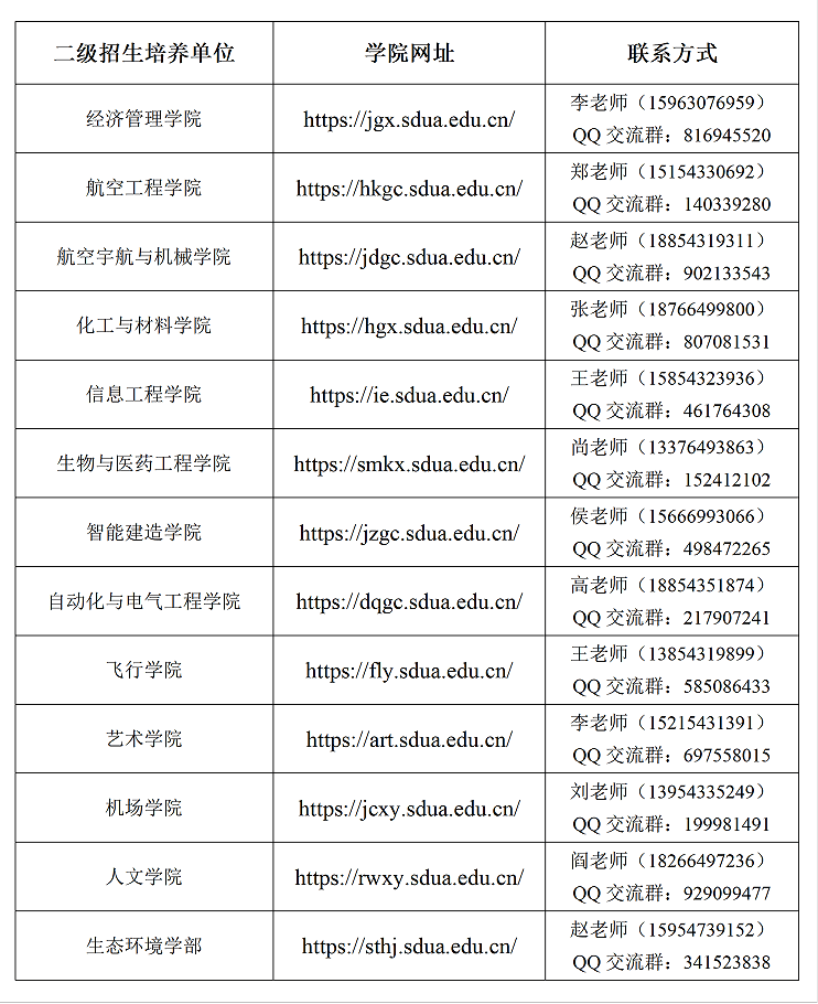 2、各二级招生培养单位联系方式