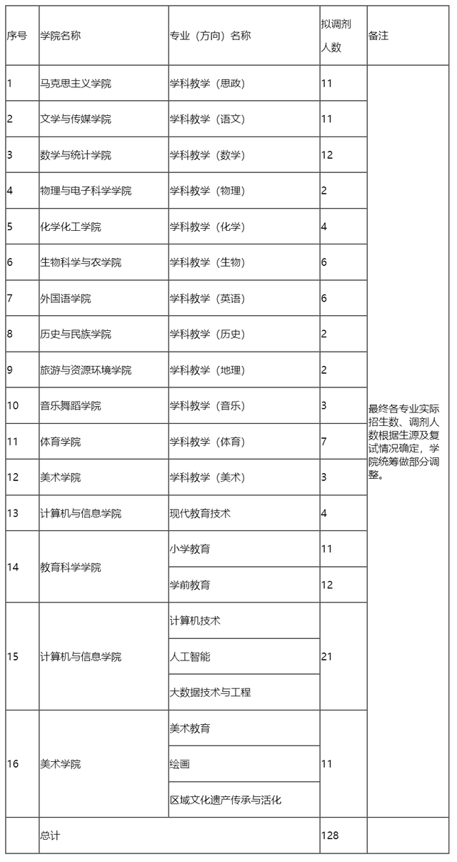 5.对调剂后生源仍然不足的专业(方向),由学校招生委员会决定并动态调配招生名额。