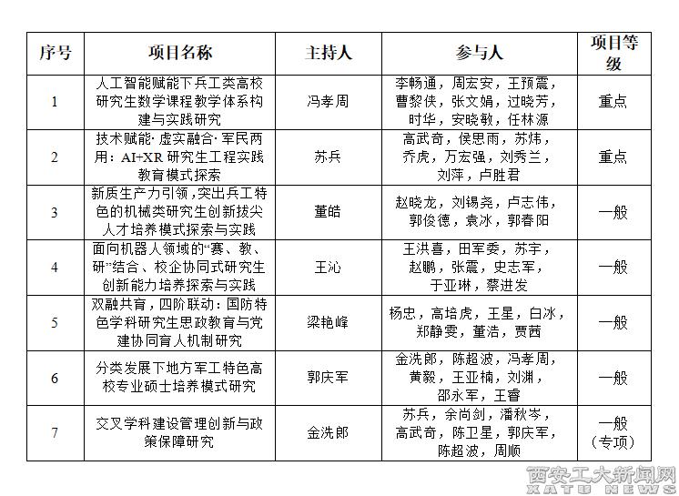 近日,陕西省教育厅、陕西省学位委员会公布了2025年陕西省研究生教育综合改革研究与实践项目立项结果,我校共获批7项,获批率居省属高校第2,获批数量居省属高校第4,同比增长133%,其中重点项目2项,同比增长100%。